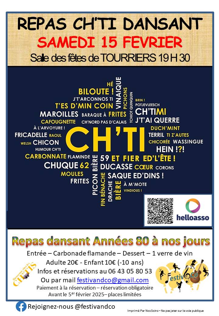 Le 15 février sera un Repas Ch’ti à 20€ :