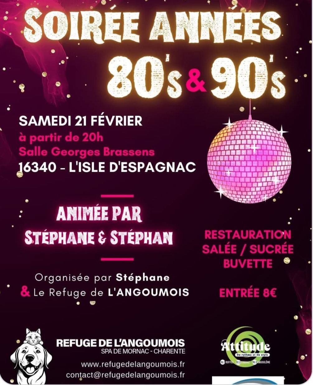 Je vous propose une soirée année 80 Salle Georges Brassens à L isle d Espagnac le 21 février.