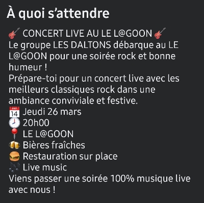 Bonjour à toutes et à tous UN P'TIT CONCERT ROCK au Lagoon?